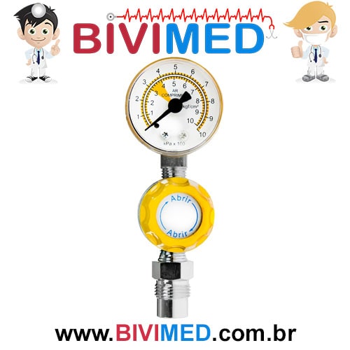 O regulador de pressão tem como função reduzir uma pressão de entrada, variável e alta, para uma pressão de saída baixa e constante. Há um regulador específico para cada gás
